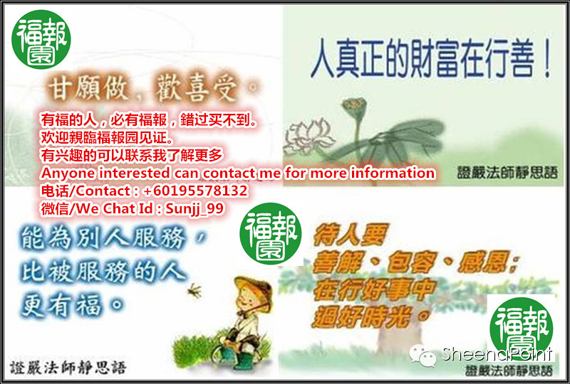 最佳投资增值的宝地,有福的人,必有福報,錯过买不到。福报园的格局与大自然格 局相互配合,完全符合了需求,是一个百年难得一见的风水 宝地。欢迎親臨福報园见证。有兴趣的可以联系我了解更多: