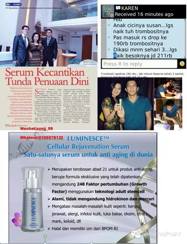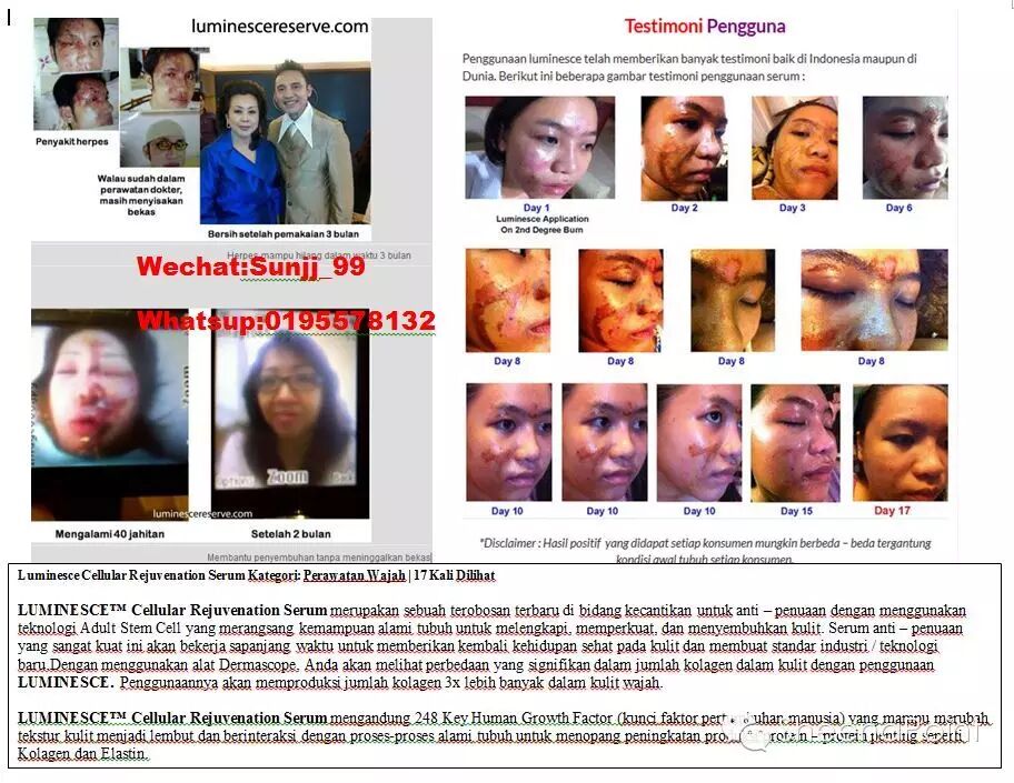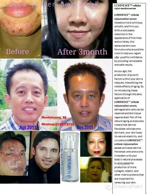 LUMINESCE adalah PRODUCT ANTI AGING BERBAHAN DASAR STEMCELL -GROWTH FACTOR yang paling MUTAKHIR karena DIFORMULASIKAN oleh PENEMU / PENCETUS TEKNOLOGI STEMCELL DUNIA itu sendiri DR.NATHAN NEWMAN.....jadi jangan membeli product dengan STEMCELL GROTWTH FACTOR TIRUAN / PLAGIAT.....karena TEKNOLOGI yang sudah mendapatkan AWARD tidak dengan begitu mudahnya ditiru formulasinya !!